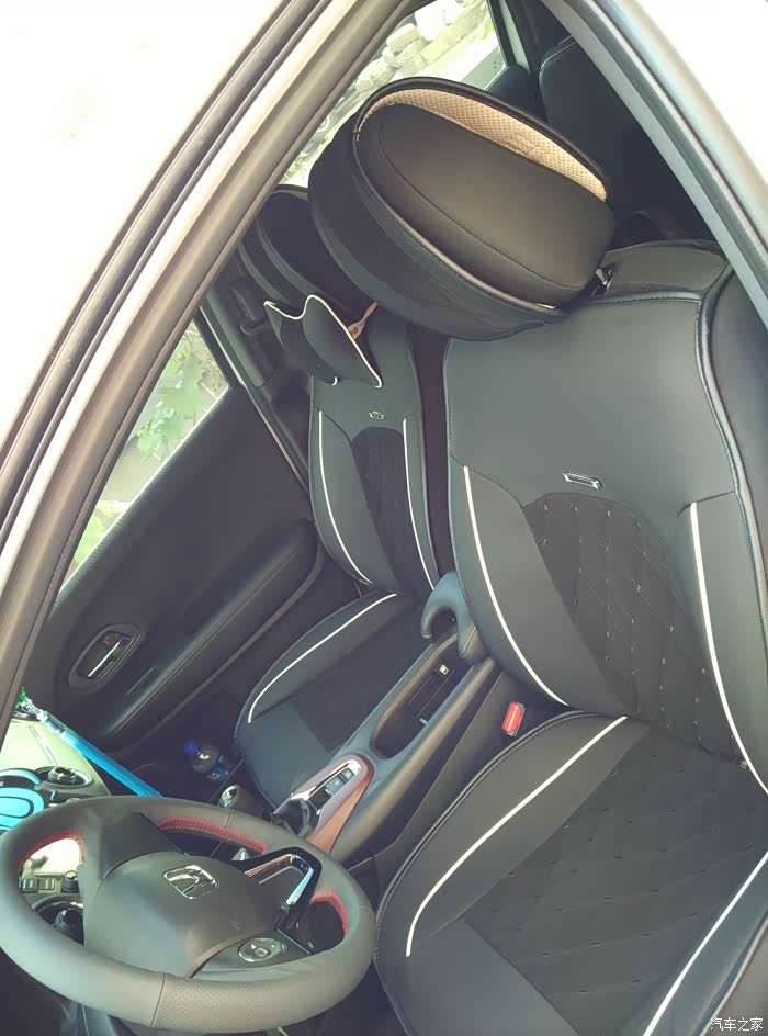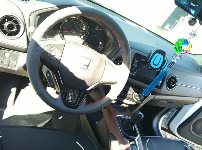 专用手缝方向盘套,老妈俩小时给缝上了,她看了一遍老马家安装视频说了句“啊简单”结果貌似比视频里缝的好看多了。没用双面胶,怕以后清理起来太费劲,效果还不错。
