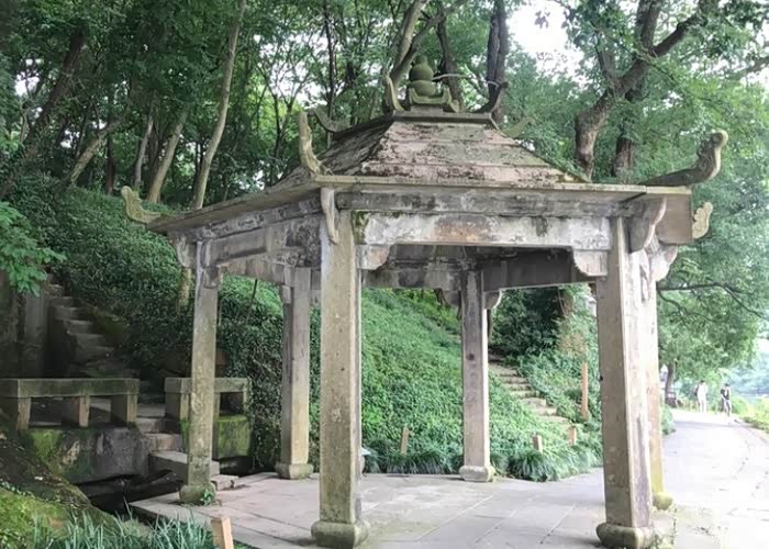 林和靖死后便葬在孤山北麓。传说他养的那只鹤也在墓前悲鸣而死,人们将它葬于墓侧,取名鹤冢。