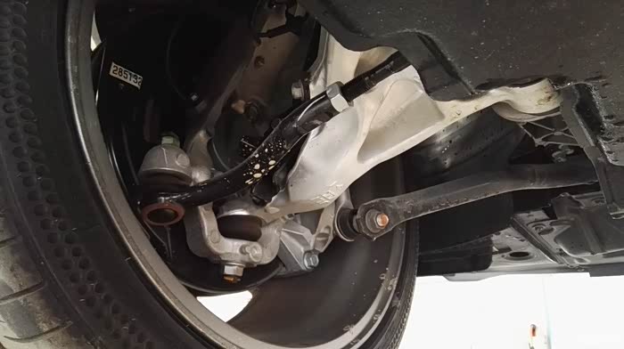 Q50后悬挂。多连杆的,大部分铝制。是不是看着这几根细细的连杆有些不爽,觉得小日本又坑人了?我之前也是这么想的,但后来我发现战神GTR的后悬挂也是这般模样。我就越看越喜欢。据说Q50的地盘悬挂是参考和继承了GTR的设计,真假不知道,反正Q50和GTR共线生产是真的,这俩后悬挂样子差不多也是真的。