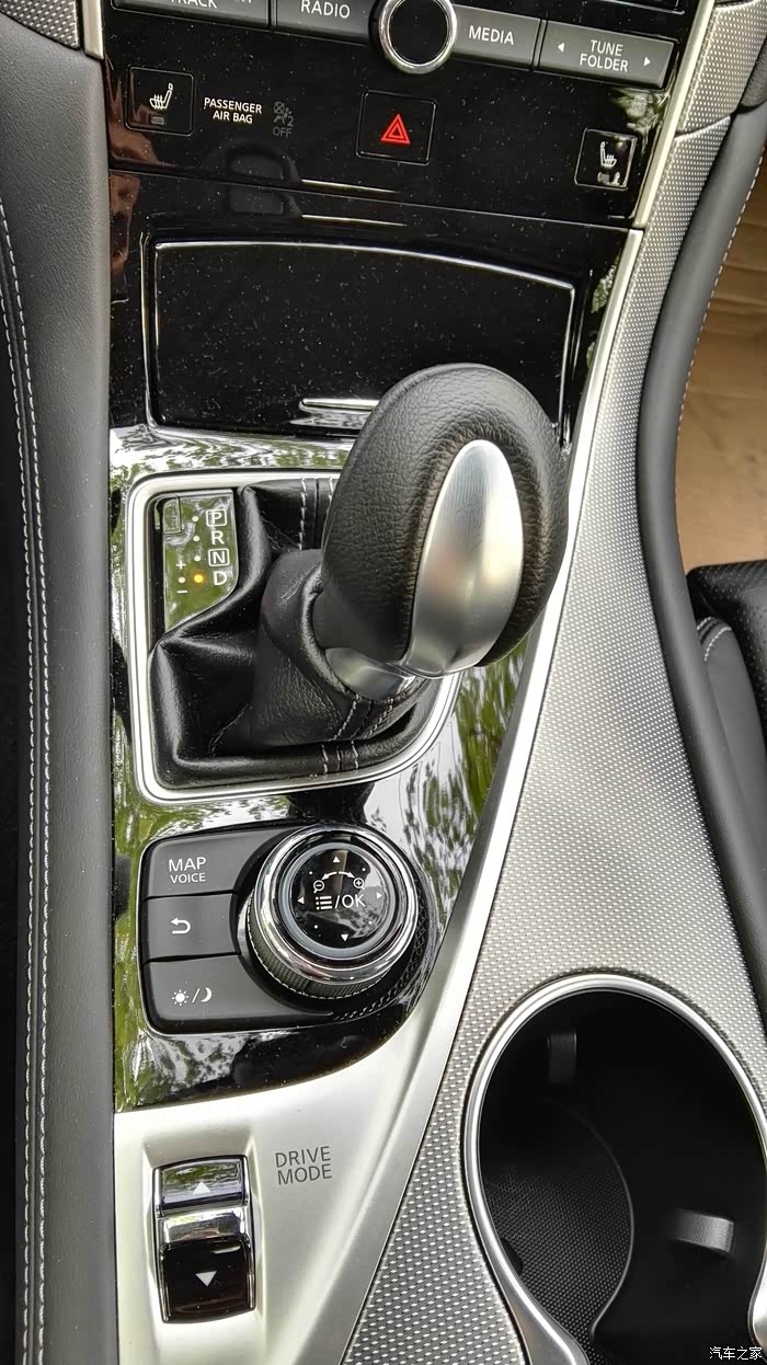 Q50S采用机械挡把,皮质覆盖,手感一般,换挡过程顺滑,无闯动,无变速箱运动挡位。