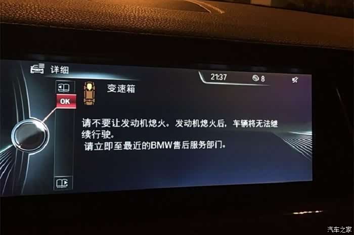 变速箱 请不要让发动机熄火。发动机熄火后,车辆将无法继续行驶。请立即至最近的BMW售后服务部门。