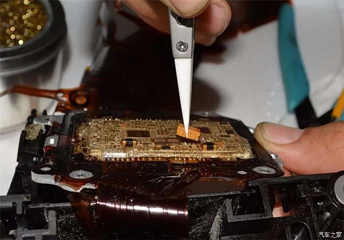 注意:钽电容旁边有很多细小的金线,碰胶都会断掉。