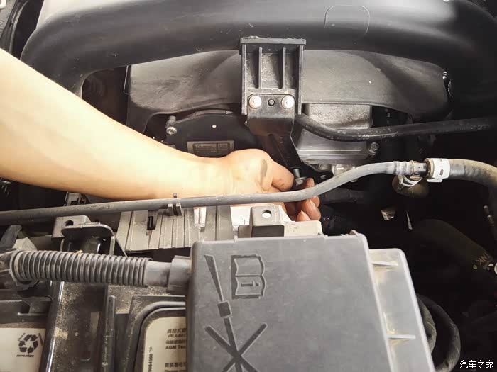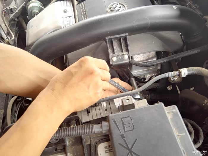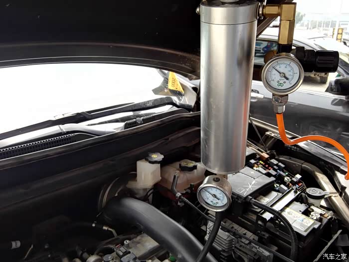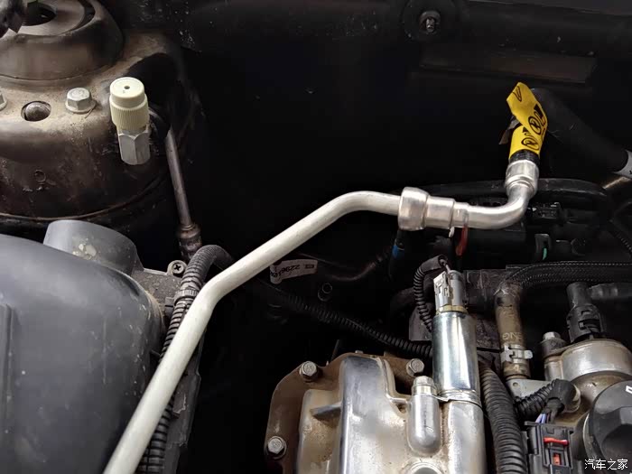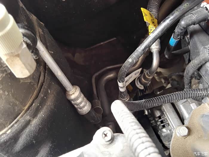 12. 该车燃油管没有维修接口,拆掉发动机上饰板,找好久也没发现,最后证实没有快速维修接口,其它车型都有,清洗油头时候,可以直接将清洗剂加入储液罐,将储液罐连接维修接口。