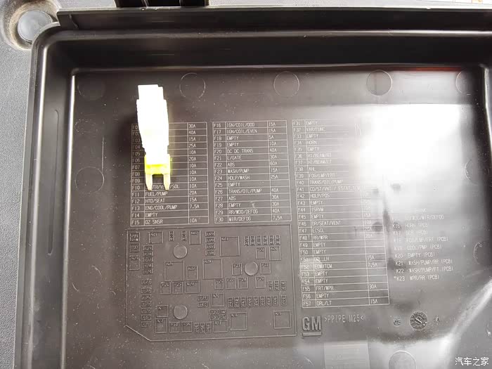 19. 如下图,油泵保险丝在发动机仓继电器盒中标号为F11,FUEL/PUMP