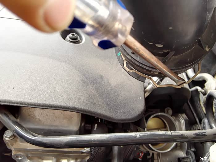 5. 拨动卡子同时将进气管用力向上拉动即可将进气管拔掉