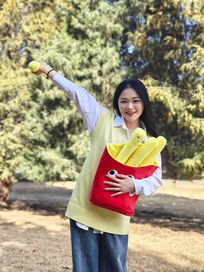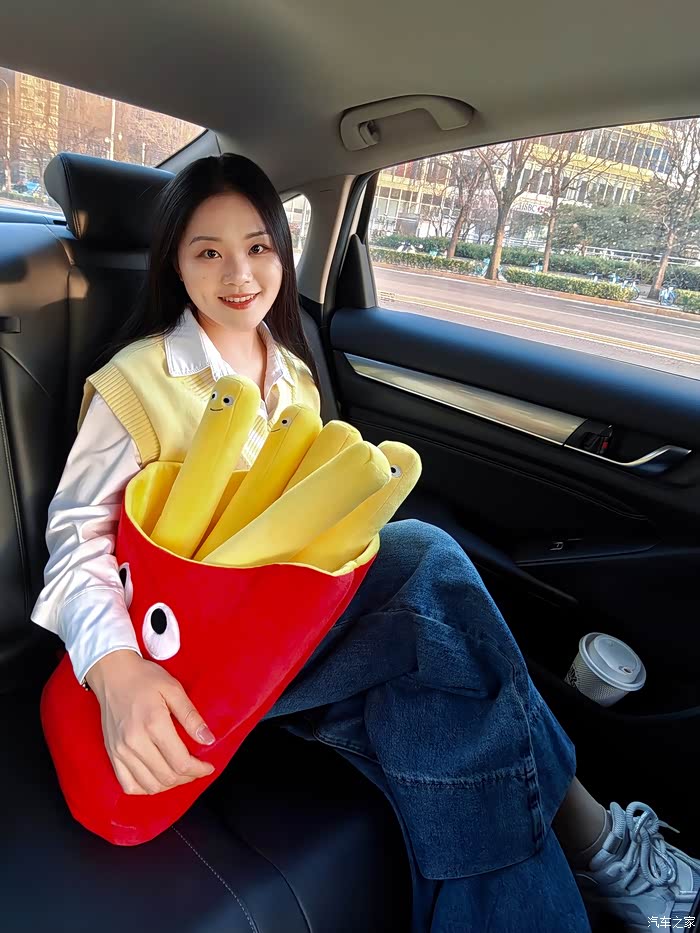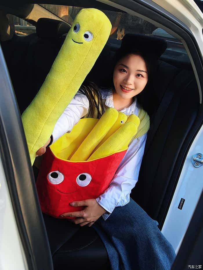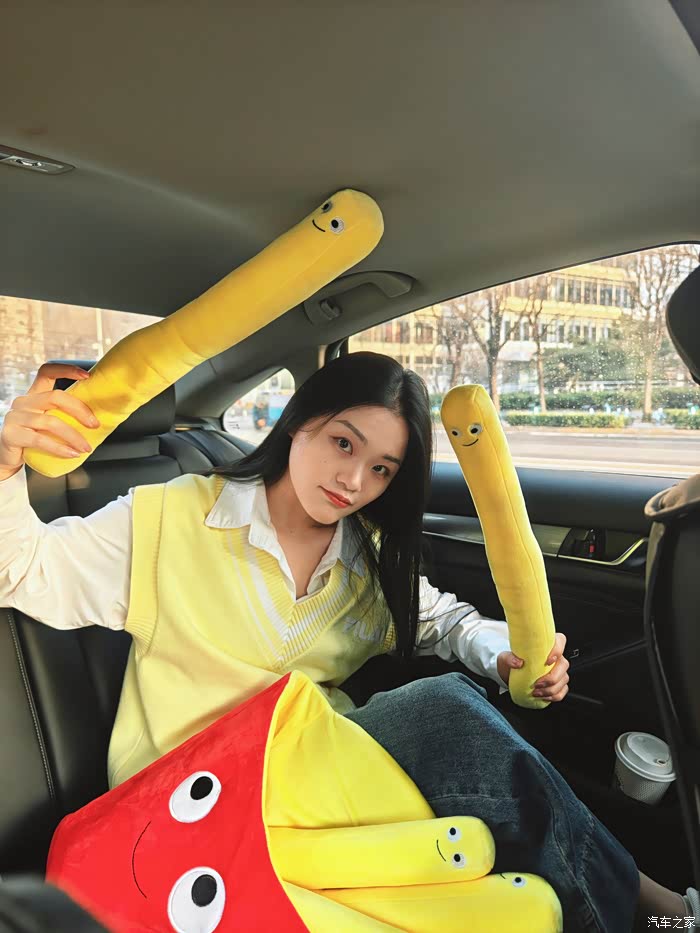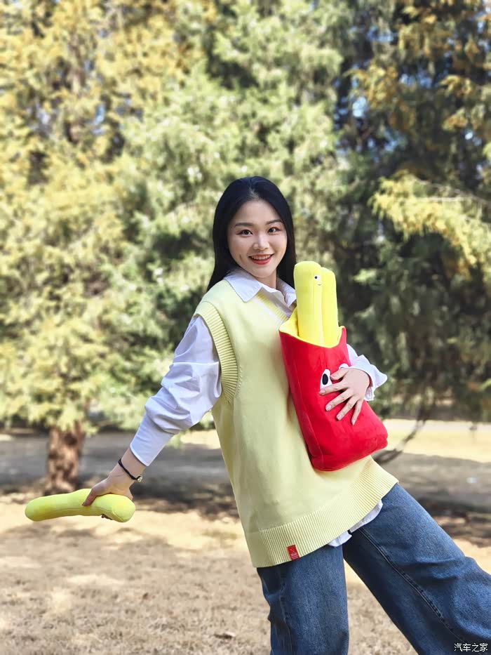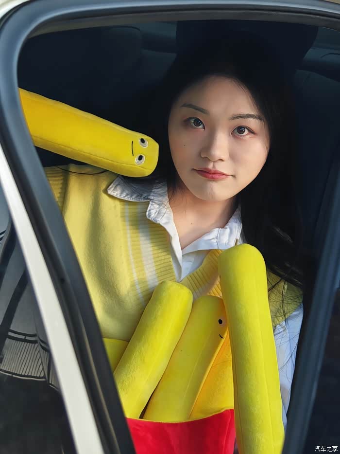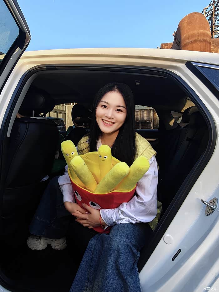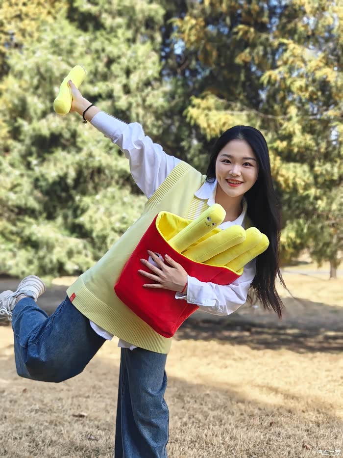 在拍完这组穿日绿色照后,我们前往第二站是798。好友说我今天带的这个薯条颜色很好看,所以我们安排了一组车内氛围照。不得不说,红黄黑的配色,真是很有活力。