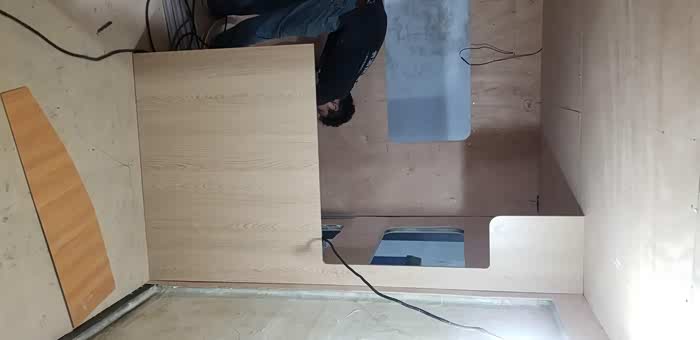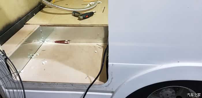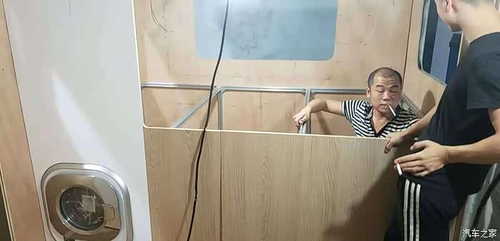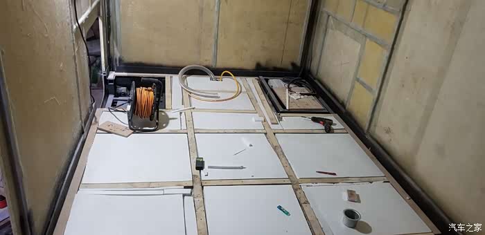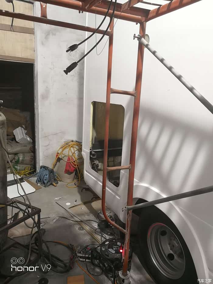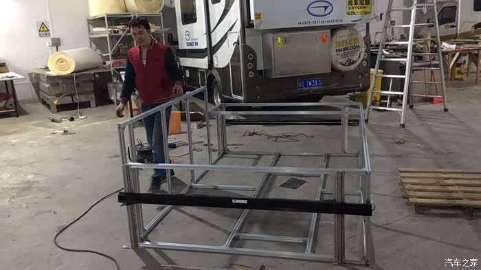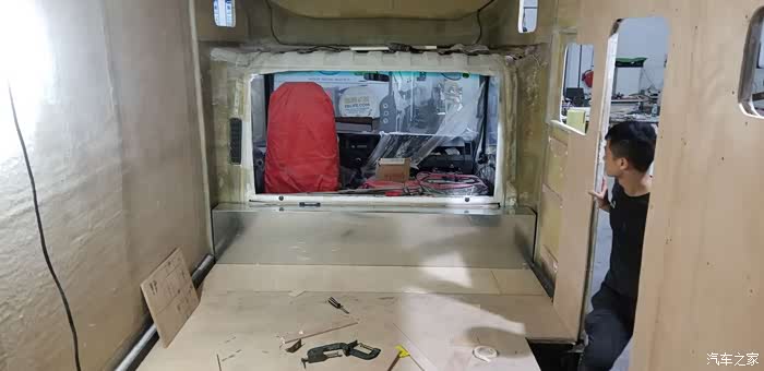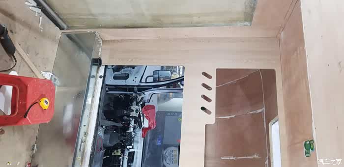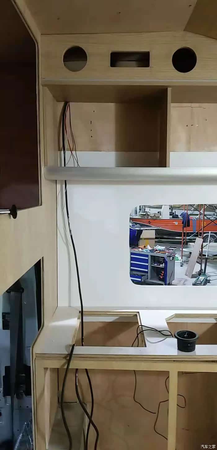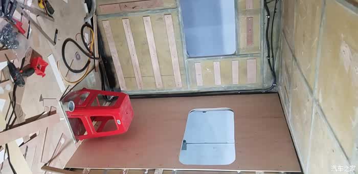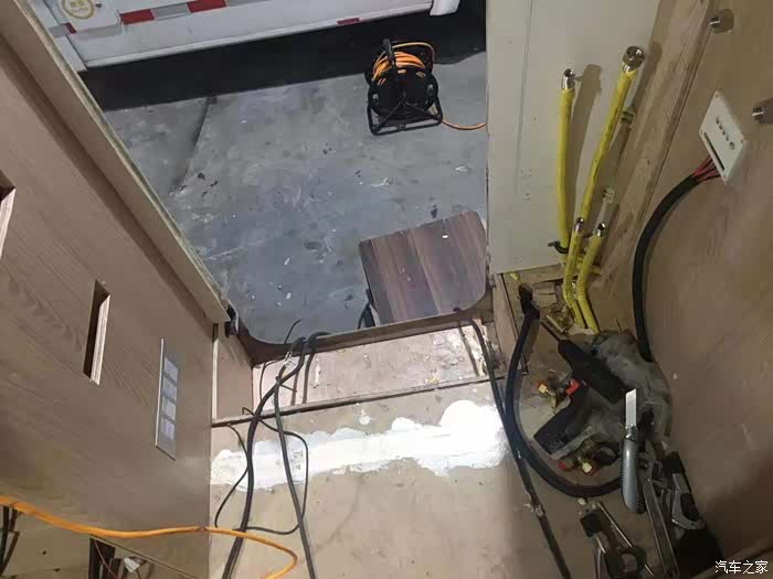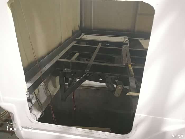 车尾为了把室外抽拉灶降到比较合适的位置,更符合人体工程学,迫不得已,把部分地板梁切掉了。舱门开孔开到下边一点。
