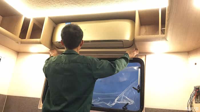 来的时候空调外机已经吊装上了,在左后侧车底,海信家用大1.5P一级能效变频空调,能效比4.83,远高于国标一级能效的4.5。