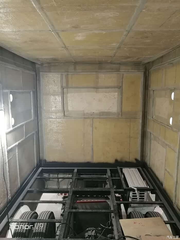 这样看起来就结实了,从底盘厂出来就已经焊接好拖车杠了。其实,保温层也是在厂里就做好了。