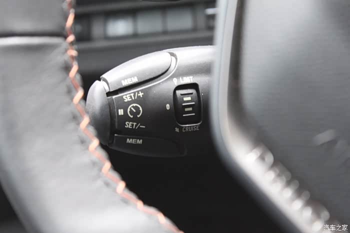 这个是定速巡航的按键把,上下两个MEM的键是调节速度大小的,按一下是加减1,按着不动是加减5,顶端椭圆是开始.暂停键。中间滚轮往上滚动是限速行驶,怎么用呢,比如有一段区间测速的路限速70,那么你就调上