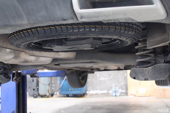 那个放千斤顶的黑盒子就在轮胎的里面。