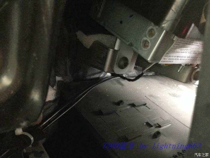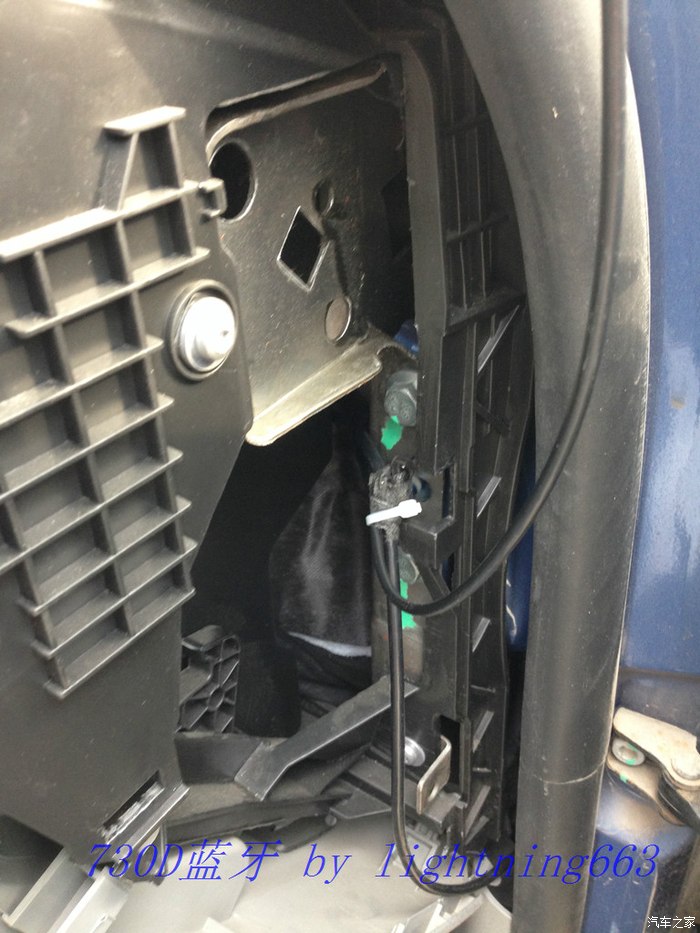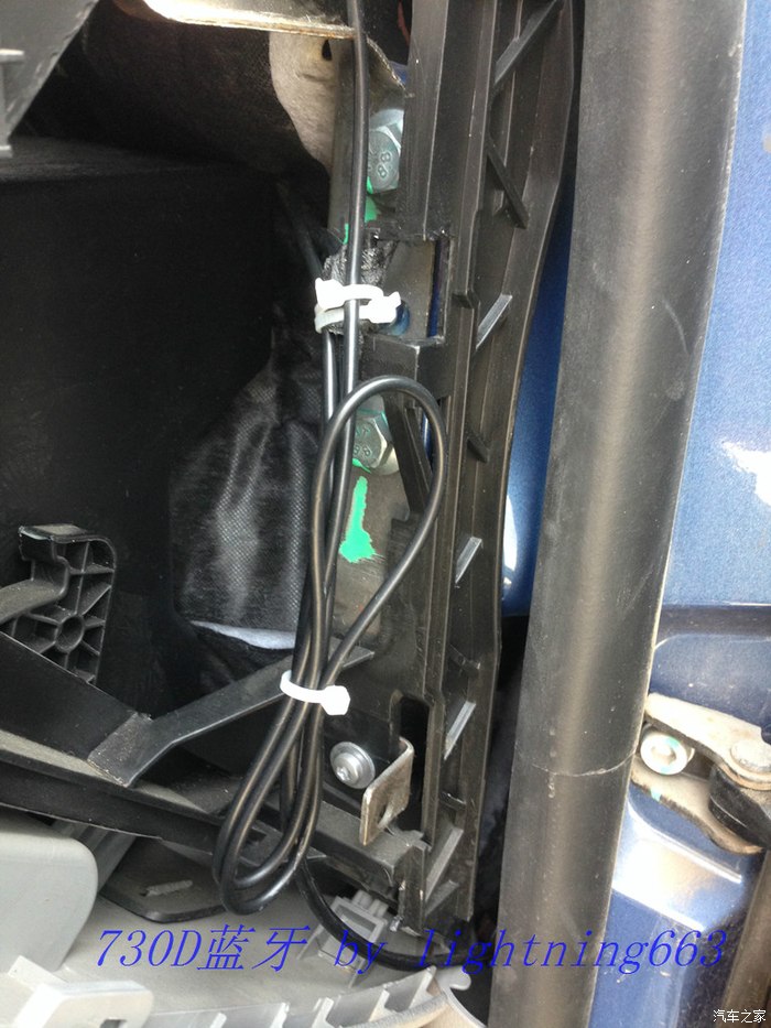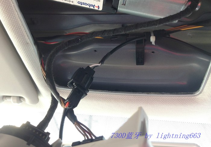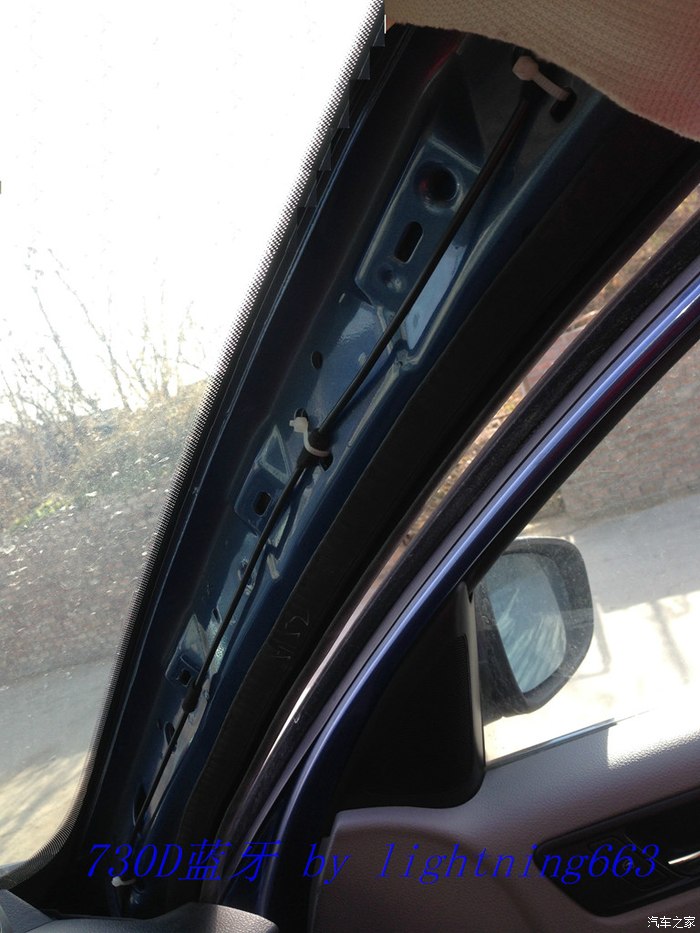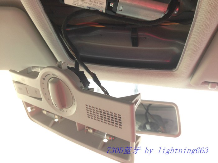 先走去话筒的线,经过手套箱,从A柱引上至顶棚,穿到室内灯处话筒原装位。