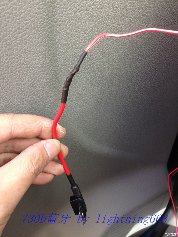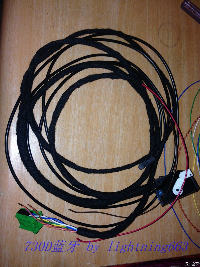 看到这里,肯定有的车友会纳闷,电源线还没接,怎么就开始复原510了?很多车友的帖子里,蓝牙模块的电源线是直接并到510的电源上的,从电路图上看,原车730D蓝牙模块是从保险盒单独取的电,并不是从510那取的电。研究一下电路图,发现510的电从保险盒15A保险丝取电,线径是2.5,而蓝牙模块的电源线径是0.5,蓝牙模块从510后面2.5的线并接,0.5的线能承受的电流是小于保险丝的15A的,如果蓝牙模块过载或短路510的保险丝保护不了蓝牙模块这个0.5的线。从保险盒单独取电还是有道理的,如果您是这么直接并接的,最好的办法是并接后加个5A保险再接蓝牙模块,安全第一。