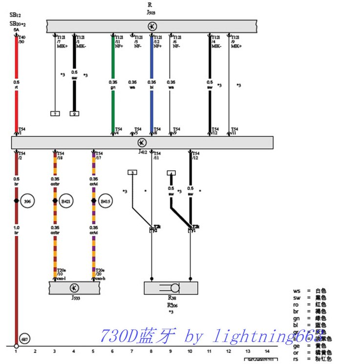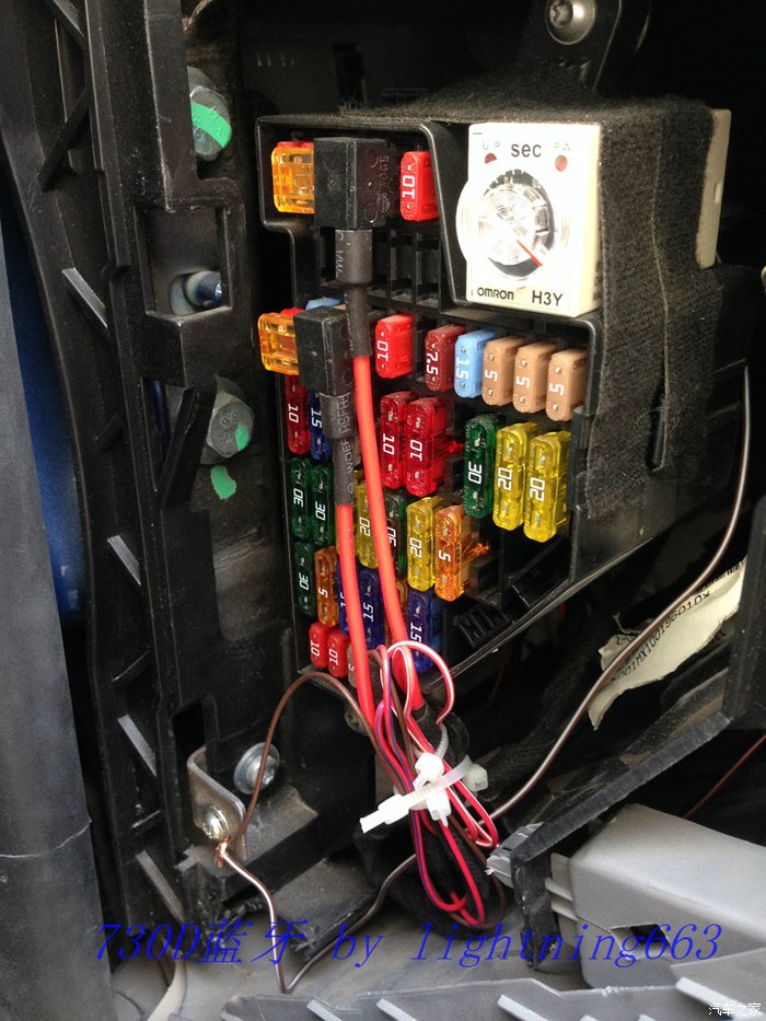 电源正插保险丝14号位,这个位置就是给电话准备装置的,属于常电,关钥匙也有电,电源负直接搭铁。730D是靠can线控制开关的,拔钥匙关机。