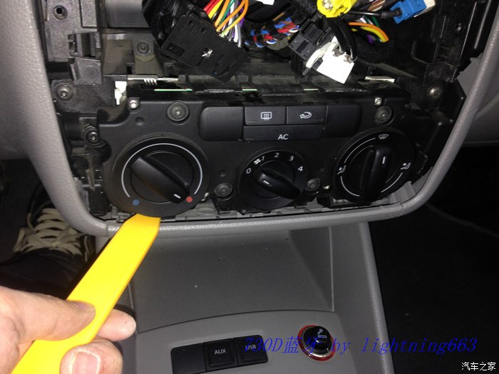 第三种,CD机下面,以前见车友是斜着放在CD下面、空调面板后面,鉴于空调面板后面有一堆的510的转接线束插头要放,那里还是不要去挤了。