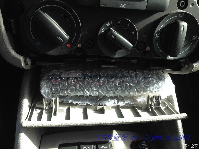 缠好后用胶带封好,放入装饰板内,复位装饰板,从CD机空隙向下摸一下蓝牙模块,固定的死死的,刚刚好。11、12款是这样,13、14款这块装饰板不太一样,好像是做成储物盒了,是否可以放模块不知道。