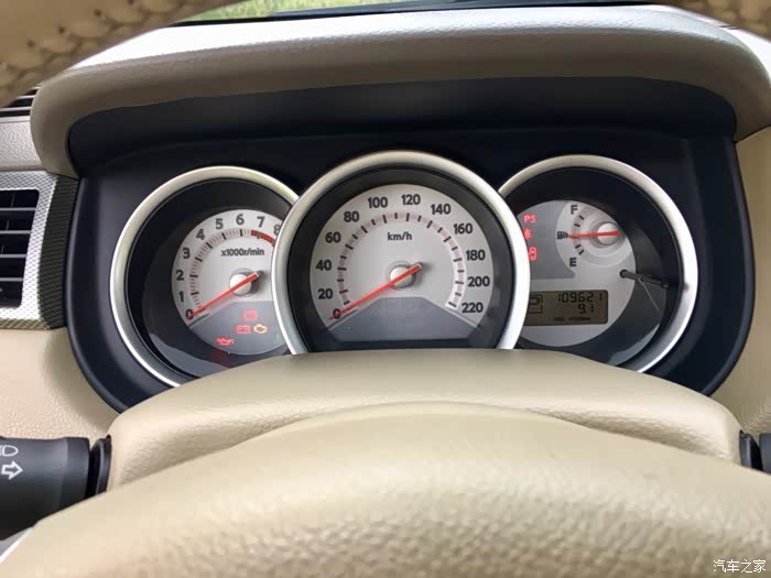 仪表白底橘色刻度很清晰易读,中间时速表,左边转速表,基本市区都是1500-2000转左右,下面全是各种提示灯,右边油表带有行车电脑,可以显示平均油耗、瞬间油耗、累计公里数等等…