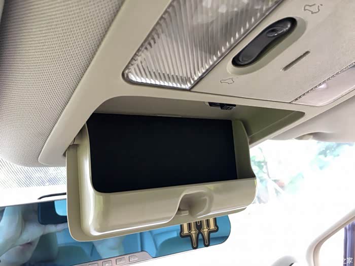 天窗开关一键自动开启不用一直按着,旁边的室内灯是Led灯芯,而且还有带植绒的眼镜盒