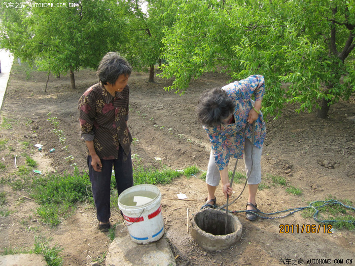 2011年,寒亭禹王台游览回程,路过枣园看到农妇汲水,老伴忍不住秀一把。