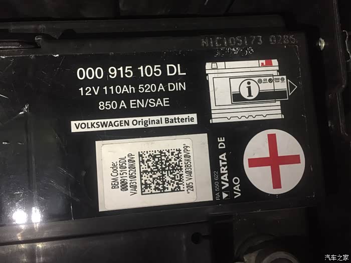 大众原厂电瓶,同时也诚实的带着“VARTA DE”(德国瓦尔塔)的标识。
