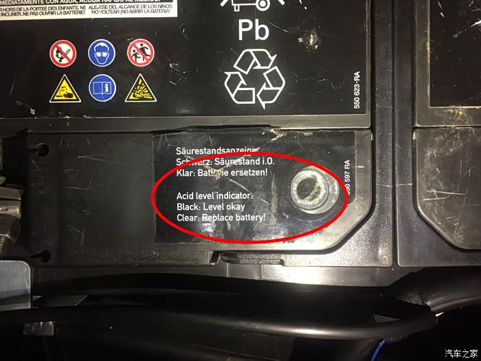 电瓶拆下来后检查,酸液液位确认正常,甚至超过了MAX的最高线。看来8年没什么蒸发和损耗,也让我死了加蒸馏水抢救一把的心思。