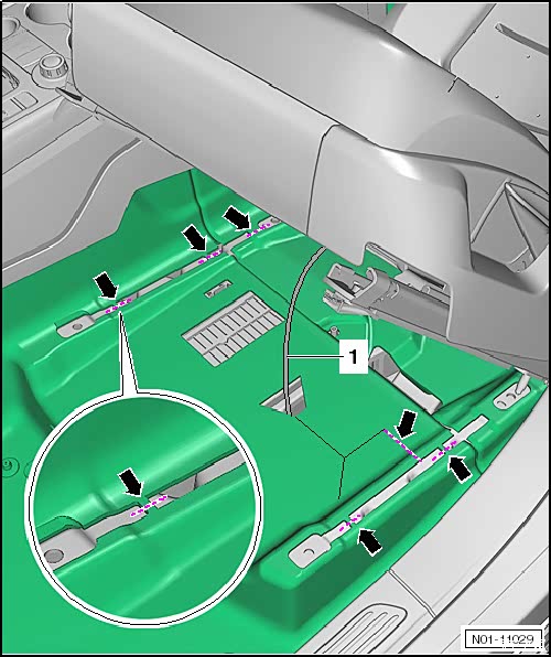 - 把座椅电动调到靠后的位置,拧下前部螺栓 4 和 1 。