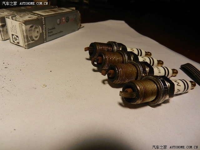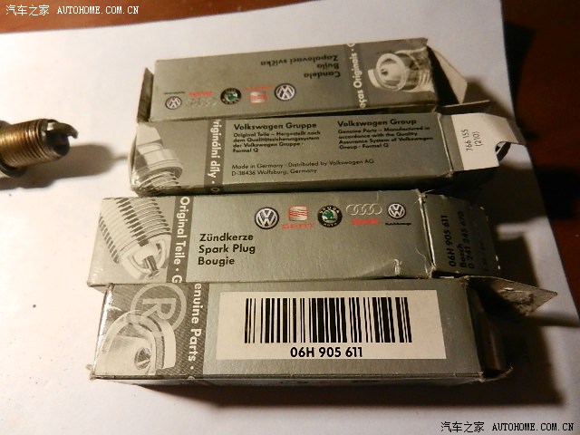 原车1.8T是10年提的,火花塞型号是101905631H(2.0T也是同款), 由博世为VW代工,有Bosch和VW的Logo,这里说明一下,原车的631h,说明书上建议25000km更换,但是4S和其他保养店面均建议40000km更换,去年10月,出保后我去有一家Bosch的服务站换机油,顺便问了火花塞是否需要更换,老板拍着胸脯说跑到40000km绝对没问题,有问题他负责。 今天跑了正好37777公里,本来打算40000再换,恰巧有空路过一家小有名气的X宝汽配店,专营Skoda配件的,以前也一直光顾他家,就顺便换了。