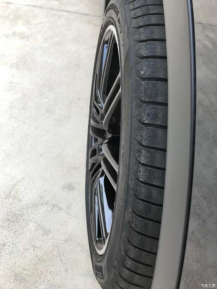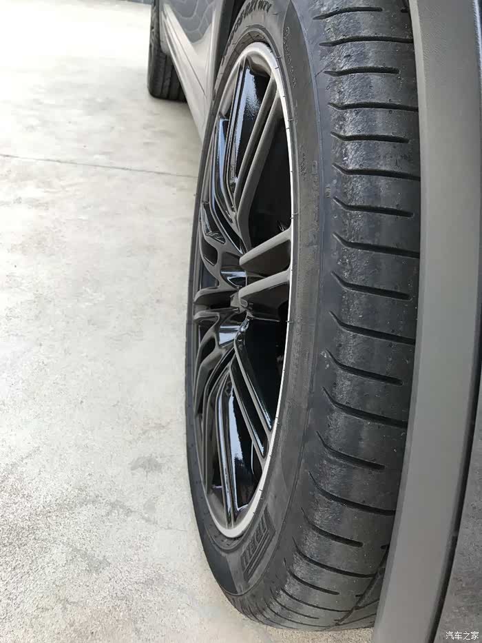 再多啰嗦几句,当时纠结21镜面轮还是21亮黑轮的时候,有一个事情困扰了我很久,镜面是所有21寸轮毂里面唯一一款锻造轮毂,工艺相对铸造来说更好,重量方面更轻,所以一开始想当然地认为21镜面轮上车之后会比21亮黑轮上车操控要好要轻盈,以至于后来决定选择21亮黑轮时候一度考虑过国内万吨锻造,想着外形一样但是锻造工艺更好更值得拥有。后来的后来,和黄山龙兄的21亮黑锻造轮有了比较,前面想的就被完全推翻了,彻彻底底翻个底朝天,首先外形比对来说,原厂21亮黑轮毂造型更夸张,从整个侧平面来看是外爆的,多幅条子像爪子一样往外爆出来的感觉,侵略性十足。而国内锻造亮黑轮毂造型平平,一比就显得很挫了。再说上车之后的操控感受,完全不像想象中的那般,原厂轮毂虽是铸造,但是上车之后完全不比国内锻造的上车显得笨重,可以说反而更轻盈,方向盘使起来更活络,其中原因就不清楚啦,反正怎么比都是原厂亮黑轮毂胜出!