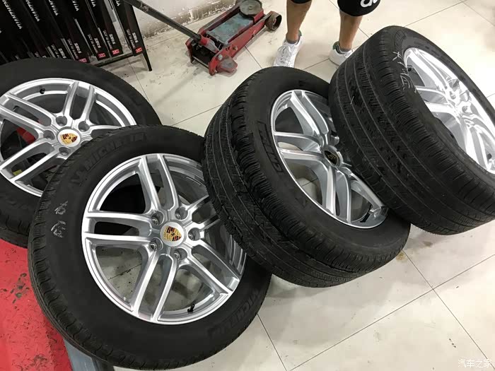 故事得从最开始说起,时间推移到计划买车时候,其他选配项目暂且不提及,光说轮毂,都知道十八寸是标配,不要钱,但卡宴车身较大,十八寸轮上车显得特别特别特别小家子气,完全拉低了卡宴的整体档次,当然啦舒适性绝对是最好的,毕竟胎壁辣么厚,地面缓冲肯定好的。那会儿我还真没研究过轮毂方面的事儿,就单单觉得这么大个车用十八轮不好看,然后我当时觉得十九就够了,大小适中,舒适性有了,外观也与十八轮有所区分,应该是最合适的了,所以后来找现车时候就找了一辆带十九turbo轮的车子,加了三万块,后来的后来我觉得这是我买卡宴做的最最错误的一个决定,一个字,坑!真真懊悔。