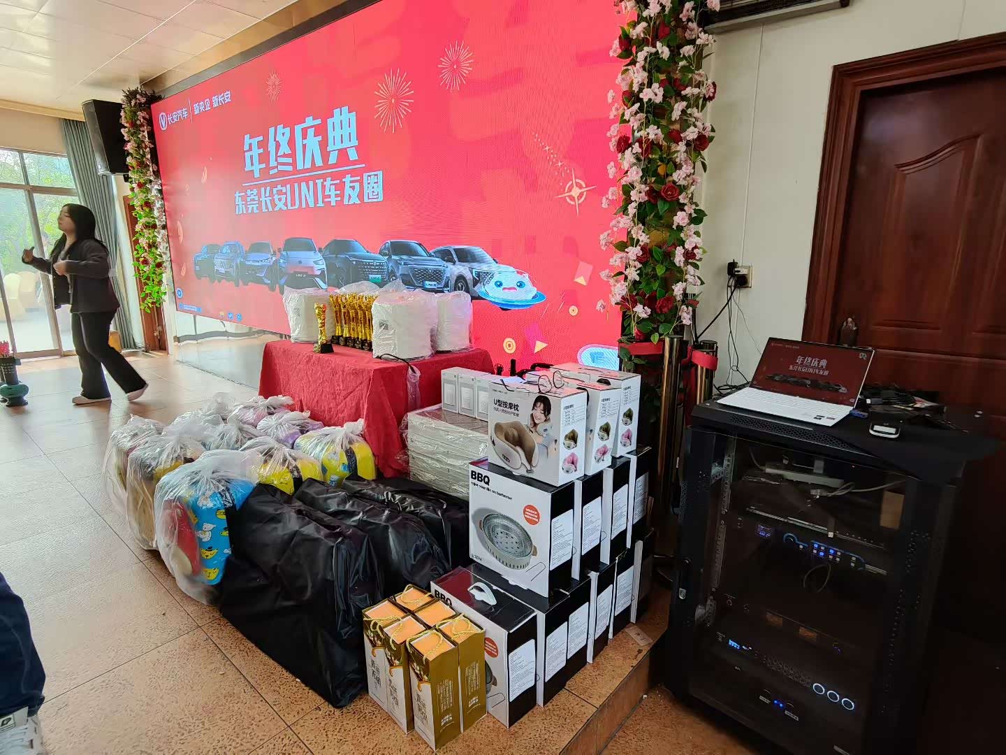 长安4S店的赞助更是诚意满满,抽奖环节惊喜不断,我幸运地抽到了一个收纳箱,实用性拉满。签到时的伴手礼也让人倍感贴心。下午大家还一起到4S店,又享受到了一顿美味的晚餐。