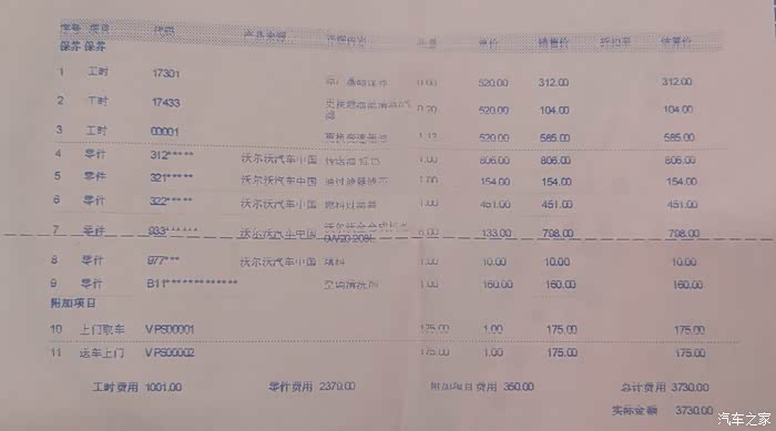 记录下第一次大保养费用,供未来买该车的兄弟参考。