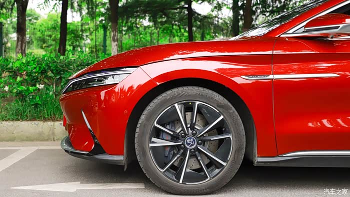 汉EV使用的是舒适性的轮胎,轮毂的造型也是为了刚好的降低风阻,起到降低能耗的作用。从这段时间的使用来看,轮胎的舒适性确实很棒,特别是高速行驶的时候也不会有太大的噪音,这一点值得肯定。