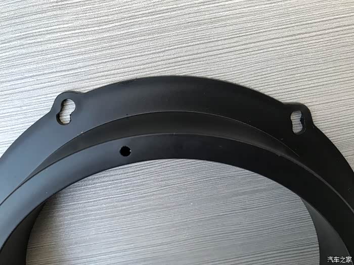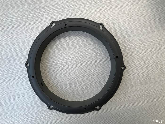 问题来了,原车喇叭在车门板上的外露高度约30mm,与内饰板的喇叭出音孔刚好贴合,现在垫圈加上喇叭的边缘外露了大约38mm顶到内饰板了,只能将车门饰板上的出音孔削矮了大约10mm,大家改的话建议还是用木垫圈,一般6.5寸的木圈厚度是15mm,两个叠一起正好