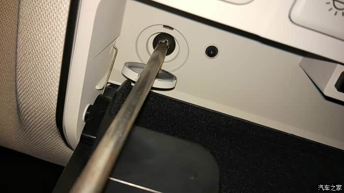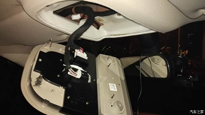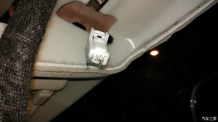 拆掉螺丝以后,轻轻下拉靠近螺丝这侧,顶灯总成就轻松地和顶棚脱开了。