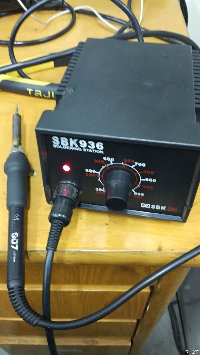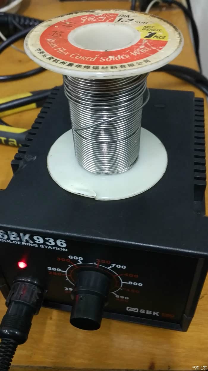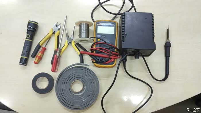 这些就是奶爸特意准备的工具和耗材,工具还算齐全吧?焊台SBK 936,斜口钳和尖头钳为Tajima的,福禄克15B万用表,一字和十字螺丝刀,止震棉条和电工胶布若干,扎带。由于晚上施工的,故手电筒是少不了的,STANLEY手电筒。