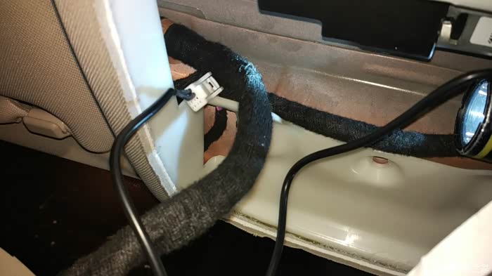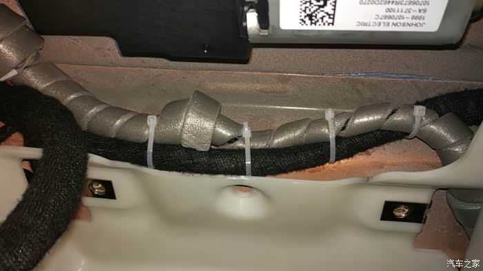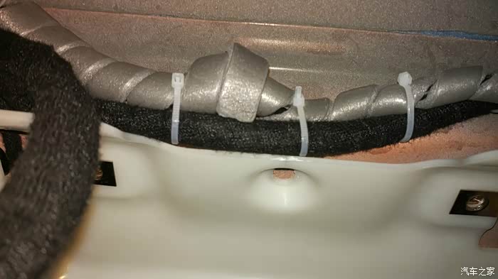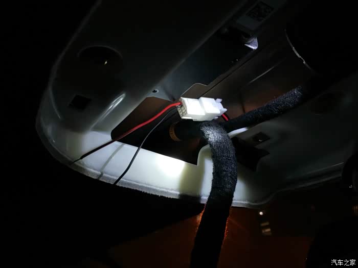 把走线缠绕上止震棉条,并用扎带固定。是不是也挺整洁?接下来就是安装顶灯总成了,过程和前面拆卸过程相反,这里就不细说。