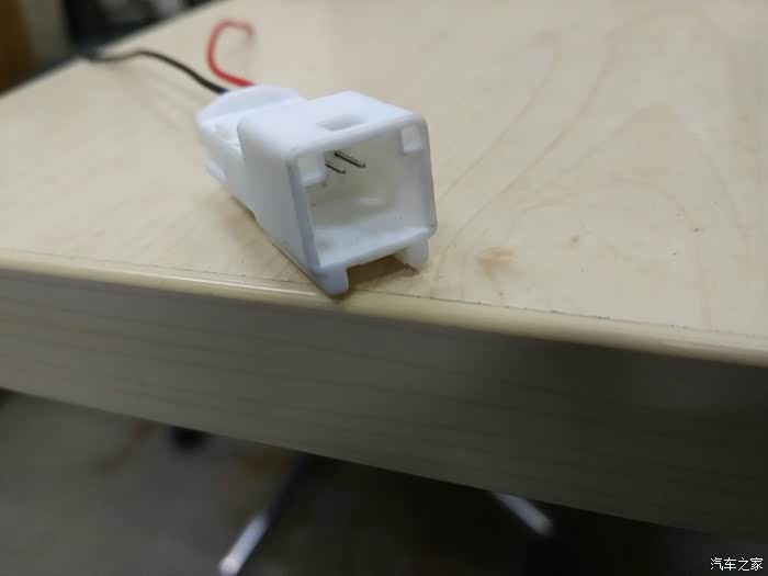 由于之前没有找到和车内孔插头对接的公插,只能先用端子插在母插头里面。偶然机会发现了配套的公插。这下完美了。焊好了引线。
