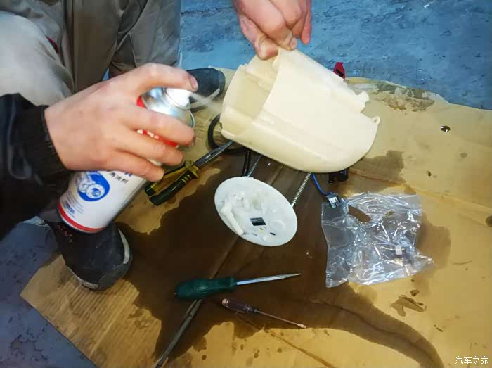 拆下了燃油泵,更换泵芯,重新原路装回去。