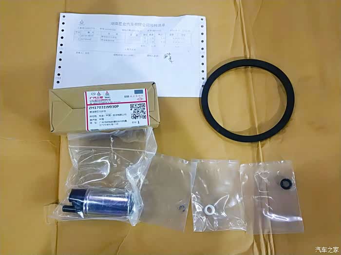 偷偷拍了一张新的燃油泵芯大礼包,电装公司的,待会需要更换的就是它