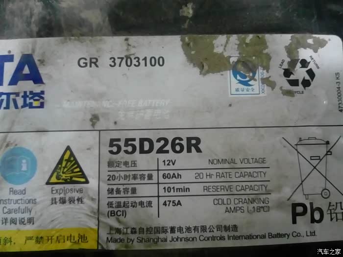 博世的电瓶牌子虽然大说都是贴牌货,碰运气看那个厂的了,据说要是骆驼厂的可能还不好,就没买。博世S4动力侠是中档电瓶相当于瓦尔塔蓝标,一样不能买55D26的,要买更大的65D或者80D,原来博世55D26的冷启动电流475A和原车一样,但是现在都是450A的电流了,小了!