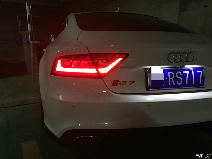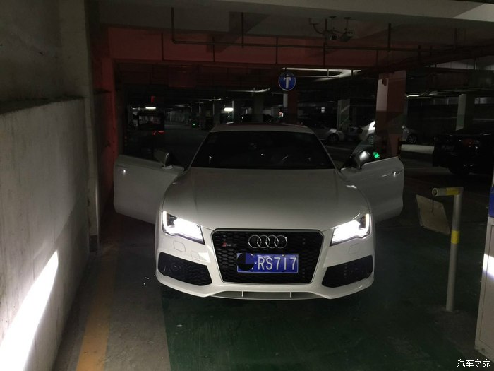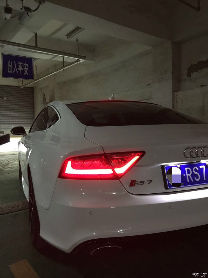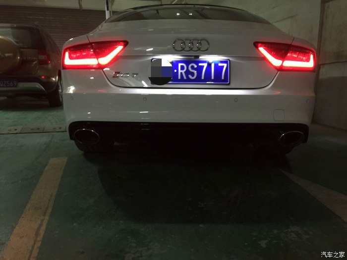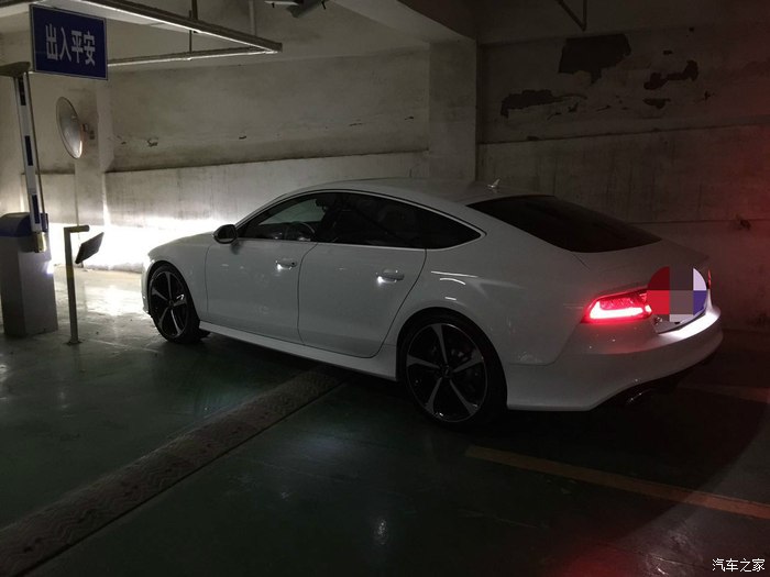 现在说说使用感受,车子开了7000多公里,综合油耗大概14,15左右。(偶尔会踩几脚的情况)高速最省的时候跑过9的,当然遇到堵车时瞬时油耗也达到过43的,至于那个发动机起停功能到底省不省油我是不知道,但麻烦是确实的,我也总觉得车子一直打火不是什么好事。所以我基本上车就关了。车子开起来很容易上手,这也许就是奥迪吧,可能没什么太多所谓的驾驶乐趣,但是强大的科技支撑总要你感到一切尽在掌握,即使是坐在这样一台猛兽里面。毕竟我是没什么高超的驾驶技术,我想大多朋友也跟我一样没受过什么专业训练。这么大马力的车子,多点电子辅助也是好的。毕竟安全才是第一位的。平时在舒适模式下基本和A7无异,无论发动机和排气声音,还是方向盘手感,油门响应,女孩子开也是绝对没问题的。即使深踩油门,车子也不会马上飞出去,也是会稍稍的反应一下。不过动态模式就很变态了,方向盘也会变得沉一些。排气也有一定的声浪,升降档时的回火放炮声还是很爽的。不过排气系统确实是它的软肋,除了动态模式下高转速时会给你一些反馈,其他时候都显得有点太低调。可是如果真换了排气,那这车本来低调的特性,是不是也就变了呢?这个就要看个人喜好了。 至于内饰没什么可说的,传统的奥迪家族风格,不过不得不提的是,这款车虽然使用的是无框车门设计,但它的车内隔音效果却做得非常好。与其相比,标配的Bose音响就显得很一般了,也不知道加装了B&O的效果怎么样。至于空间呢,我只能说刚刚够用,后排空间表现一般,小孩和女士乘坐不会有太多问题,但是超过175的男士乘坐的话估计就不会太舒服了。总而言之,此车绝对是辆好车,无论是从外观还是性能或是实用性,奥迪把很多看似不能共存的东西,奇迹般的整合在了一起。买车的时候还考虑了4门的M6,14款的CLS63,这两个车的优惠幅度都很大,基本和小七一个价位了,所以选择时不存在价格因素。现在看来,我还是做了最正确的选择。(并没有贬低另外两辆神车的意思,只是相对来说,我始终认为大马力的车,搭配四驱才是最合理的。)