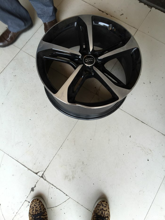 我的一个不小心,90左右的速度在郊区过了一个小坑,就这样了。在此提醒即将买车的朋友,选这个轮毂,首先要考虑自己城市的路况和使用范围了。30的轮胎壁实在太薄了,比458原配的21寸轮毂胎还薄,跟大牛一样了。通过性太差。 4S店的这个轮毂还没存货,我是运气好,当时全国唯一的一支囤货在长春,被我找到。价格不用说,黑的要死,最无语的是这个轮毂居然不是锻造的。哎。。。搞得我现在好想换掉,可是又不舍得。。。
