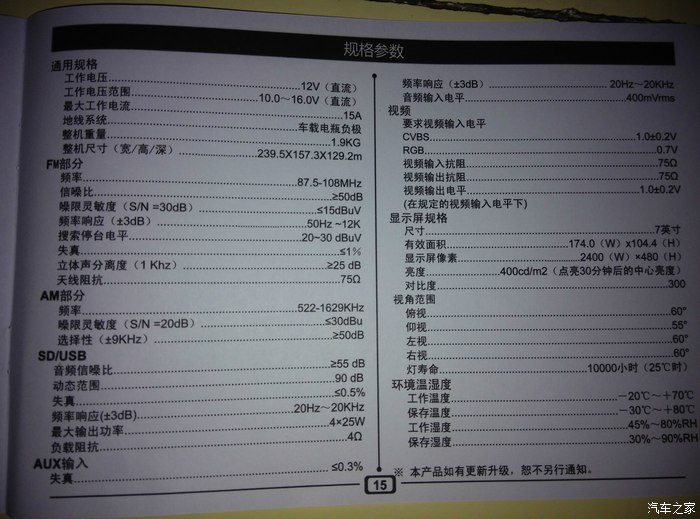 SD/USB下面最大输出功率写的很明白,导航一体机内置功放为4×25W。