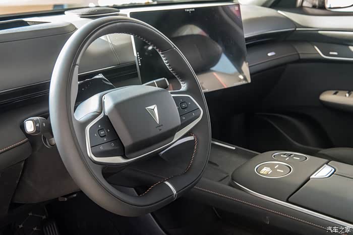 AR-HUD,大胆创新替代了仪表盘、15.6英寸0~135度大角度旋转向日葵屏、12.3英寸副驾超感智慧屏(收放式副驾悬挂屏,收放自如)。