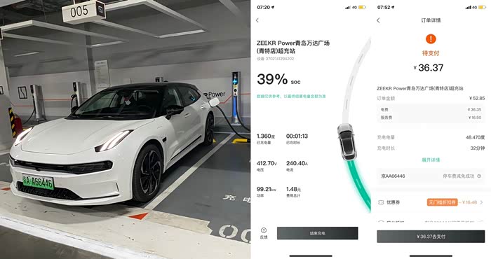 5. 高速服务区国王充电可以下载e充电,有时候会有优惠券。在app上查询到的充电桩也可以从app扫码充电并用极分抵扣。如果用极氪app扫码充电,需要在最后的支付二维码界面扫码才行,否则其他的二维码都是让下载e充电用的。