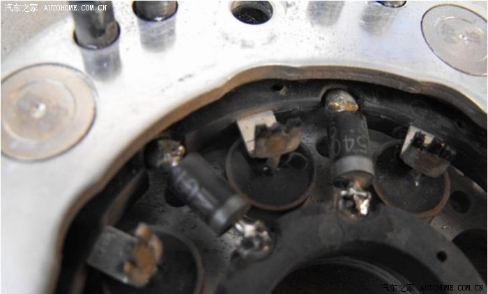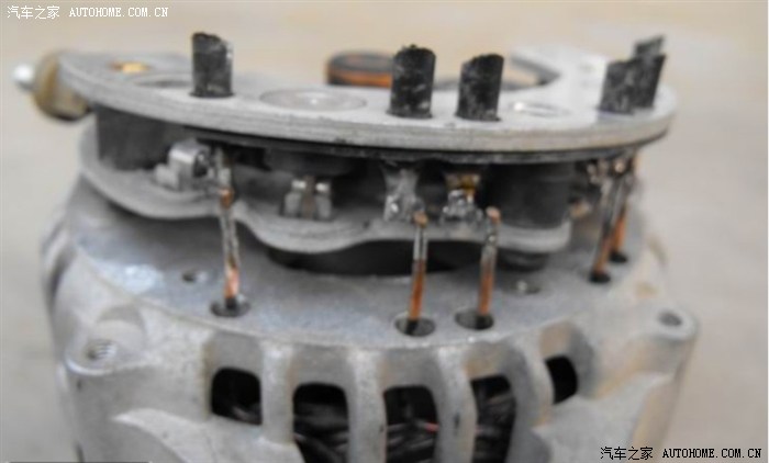 拆发电机时费了很大劲,最终发现要把发电机向左转一定的角度,才能把发电机的固定杆拆下来。从图中可以看出来。如果确定是电压调节器的问题就没有必要再拆 整流板了,整流板上有几个二级管,顺便测试一下很容易。淘宝网上有个专卖电压调节器的卖家,一般车上的电压调节器都能找到。4S店说北斗星 1.0的发电机电压调节器是内置的,不能单独换,只能换总成,这话说的这么绝对,背后必有“惊天的阴谋”啊!事实证明也确实如此,其实是可以自己换的。只要是人组装的,就有办法人把它拆开。