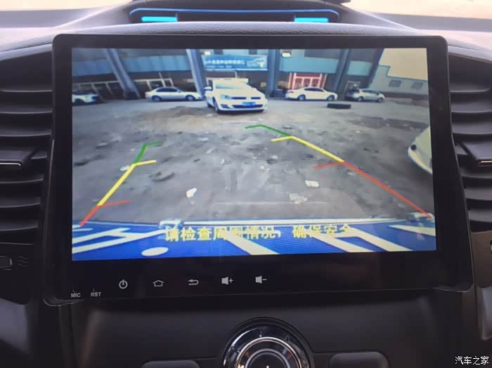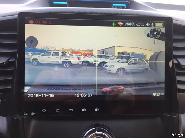 这样看就两个摄像头了,而且很不美观,一看就是后改的,咱本来是有这个配置的,哎,没办法忍着吧,这个摄像头不如原厂的清晰,尤其是夜间,原车的倒车动态辅助线也没有