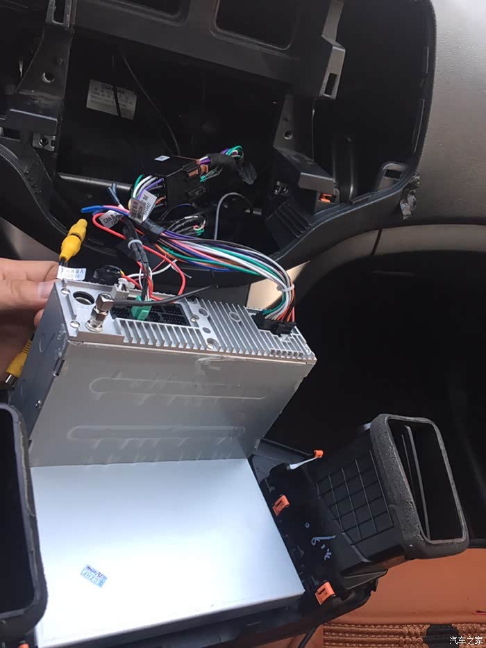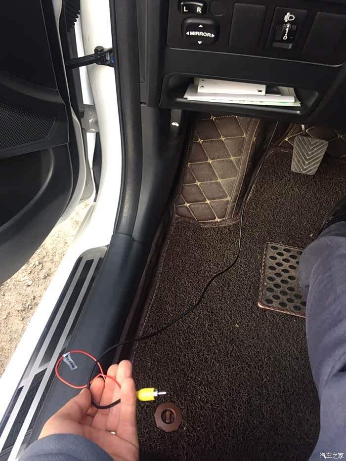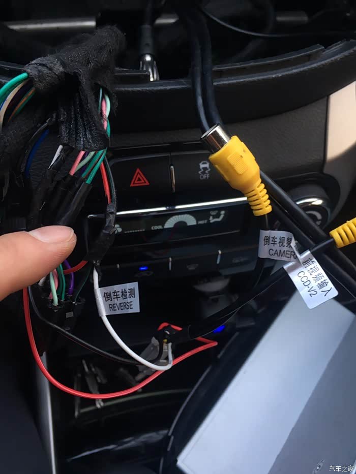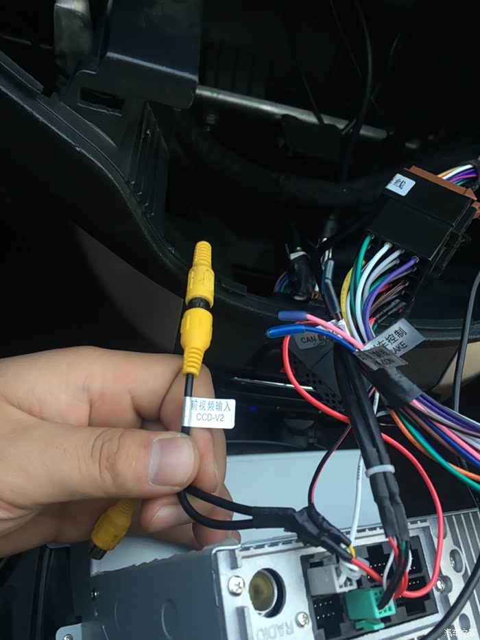 换了导航后,店里的三位师傅都没找到原车倒车摄像头的线,无奈之下,给我安装了个牌照架的摄像头