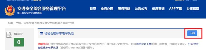 14:在首页就可下载检验合格标志电子凭证。