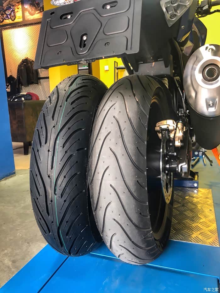 毕竟是宝马,车的底子应该是很不错的。小缺点肯定不少,那么我就来逐一的调整吧。 首先这对原厂轮胎,饱受诟病。 和新款KTM390一样的米其林入门级街道胎。干地抓地力极差,舒适性不错,排水性不错,很耐磨。 各大品牌入门级街车基本都选择这款胎,主要也是成本考虑吧。 在KTM390的测试里,呆子,小丙都认为这胎拖后腿了。 所以,首先就是,换胎!!!